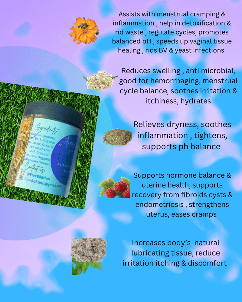 How to use : Boil a pot of water (stainless steel or add in glass bowl. NO PLASTIC!!) and add ¼ cup of herbs and let steep for 10-15 minutes. Get a towel and wrap it around the sides of bowl or pot for your protection. Squat over pot. You can also use two small pillows and sit on your knees over the pot. As well as you can use two little chairs on the side and sit over the pot. You will sit or squat for 15- 30 minutes max. Light a candle play some music and relax. Take this time to focus on your intentions, journal, connect with yourself & your womb ! 🤍